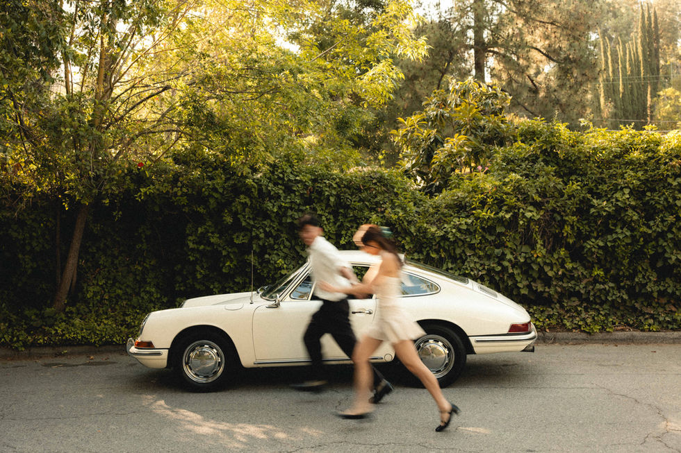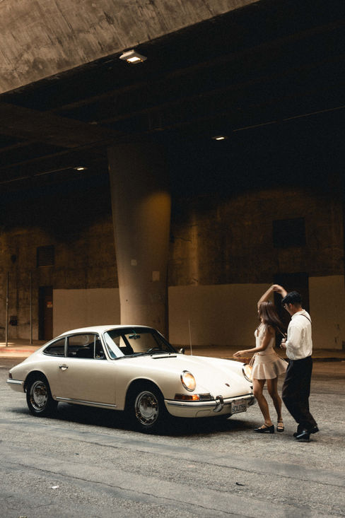 When it comes to engagement sessions, I’m always looking for ways to blend personal stories with unique aesthetics. For this downtown Los Angeles shoot, we combined the sleek lines of a classic Porsche 911 with the grit and charm of DTLA’s industrial streets. The result? A shoot that felt effortlessly cool, wildly romantic, and cinematic in all the right ways.