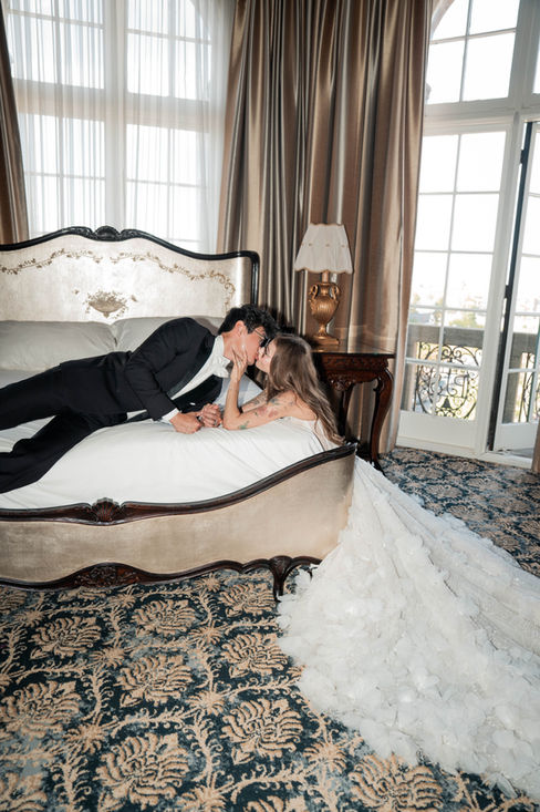 The romance in LittleDove and Kai’s wedding portraits is undeniable—each frame capturing their grace and deep connection. The way their hands naturally find each other, the way their expressions shift from joy to quiet admiration, and the way the golden light wraps around them makes these portraits unforgettable. This day feels like a dream—soft, glowing, and full of love. Their love shines through every frame, captured effortlessly in a way that feels timeless and epic. Not to mention, the Mission Inn has beauty everywhere you look.